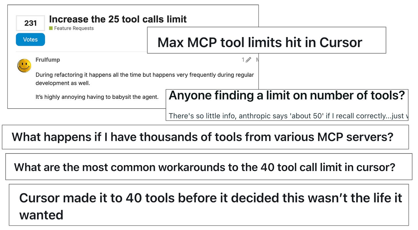 MCP enables models to access external tools, but platforms like Cursor impose hard limits on the number of tools available—typically around 40—to manage system resources effectively. When you connect multiple MCP servers, such as one for GitHub that alone exposes 30+ tools, exceeding this cap means some tools become inaccessible, requiring you to manually disable others to proceed.